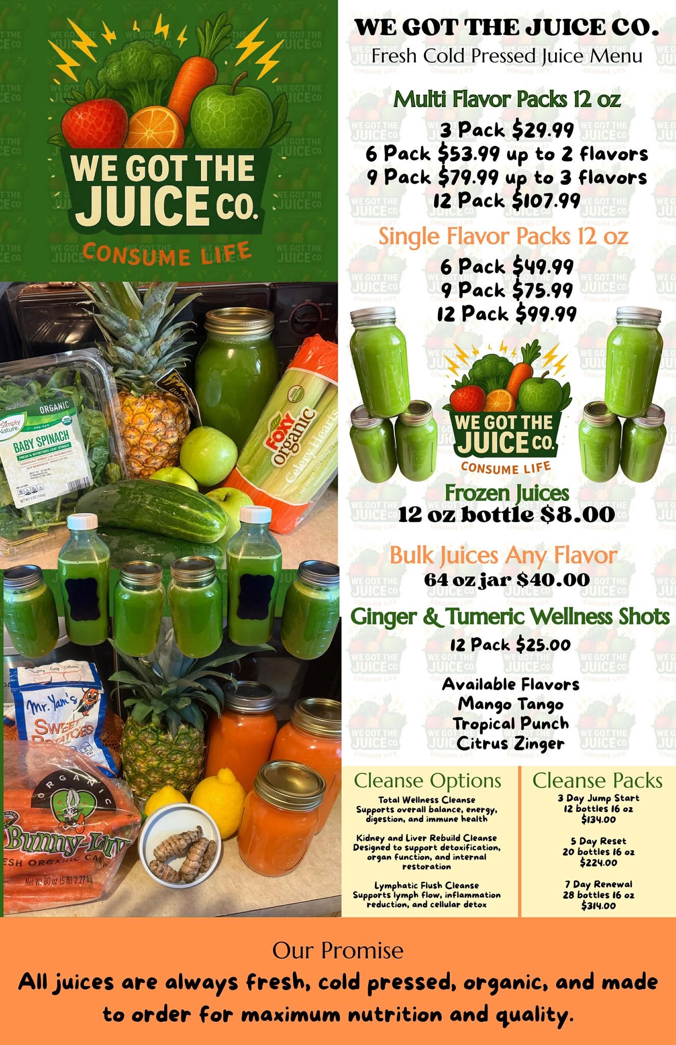 All juices are made to order to ensure maximum freshness and nutrition. Orders are typically prepared within 24 to 48 hours. You will receive pickup or delivery details once your order is ready.